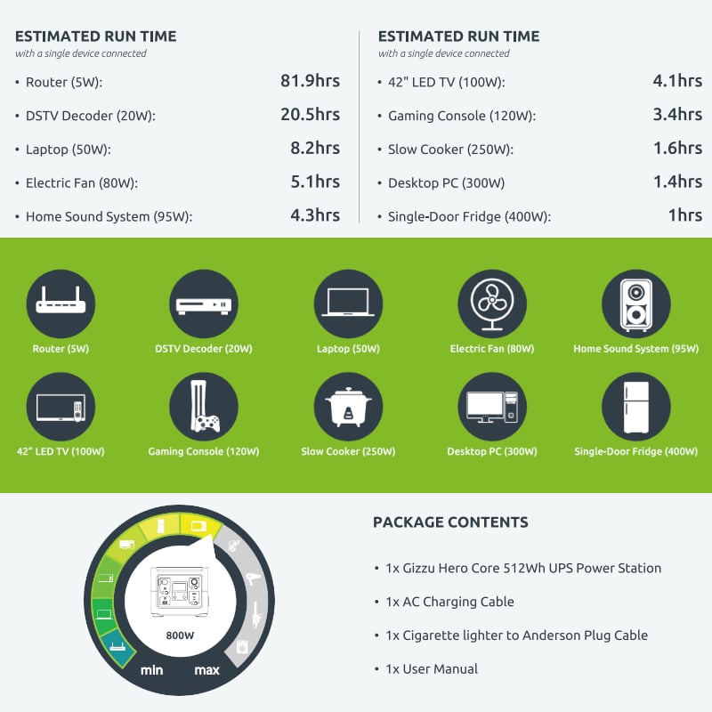 - Gizzu Hero Core 512Wh UPS Power Station x1