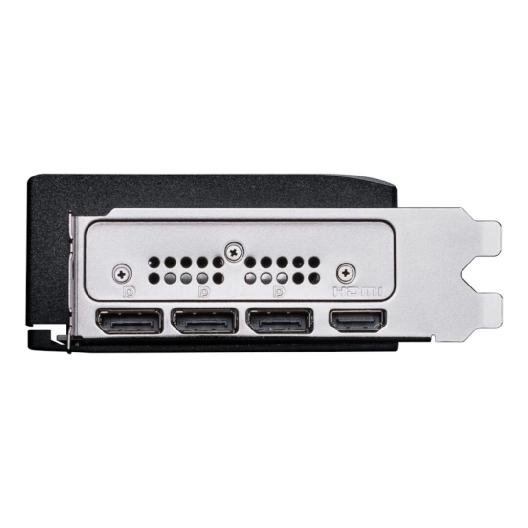 Connectivity is comprehensive, with three DisplayPort 2.1b outputs and one HDMI™ 2.1b port, supporting up to 8K resolution at 120Hz with DSC. The graphics card supports up to four simultaneous displays and is fully compatible with G-SYNC® for tear-free, ultra-smooth visuals.