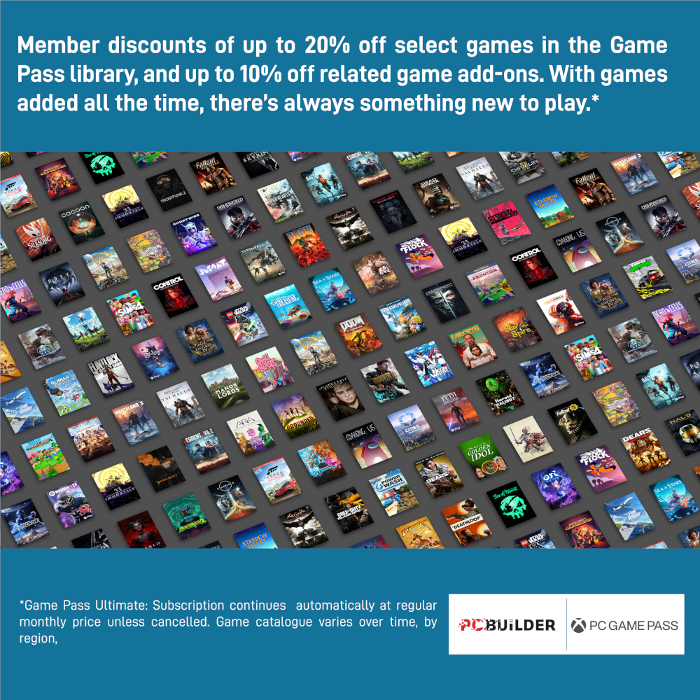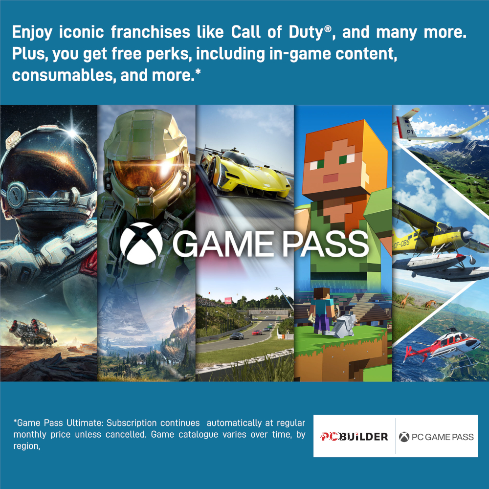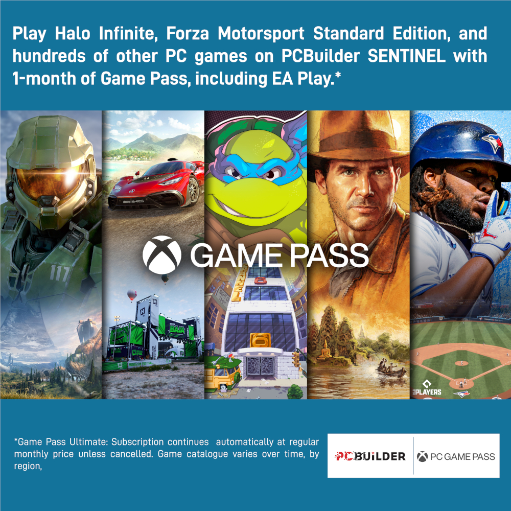 The PCBuilder SENTINEL Windows 11 Gaming PC also includes one month of PC Game Pass including EA Play. Play over 100 high-quality PC games, in various genres such as Halo Infinite, Forza Horizon 5, and Minecraft on your new gaming rig. With new games added all the time, there’s always something new to play from day one.