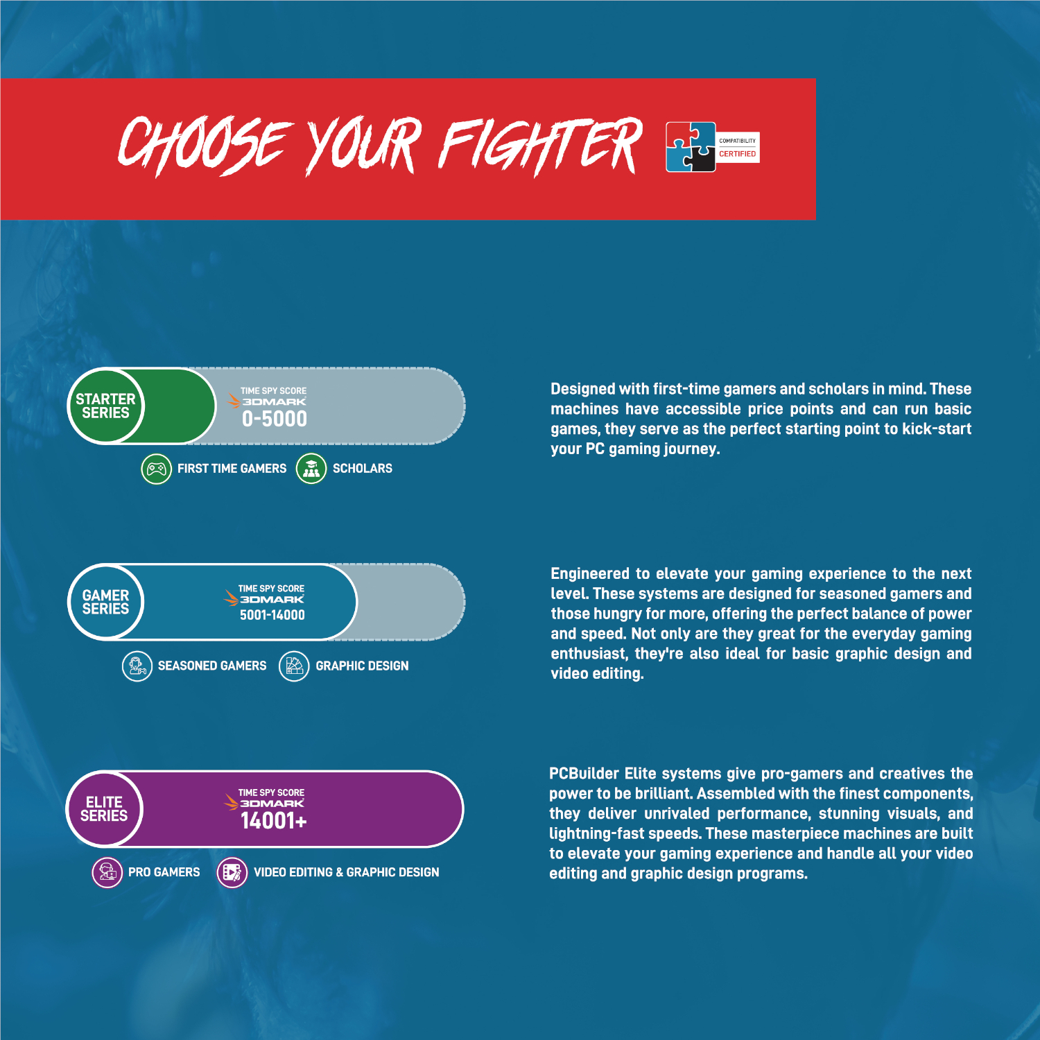 Built in-house by our experienced technicians, each build is constructed with care and precision. They’re packaged with protective foam that secures the components while in transit, so every build arrives at its destination ready to game from day one. PCBuilder gaming PCs come with a 2-year warranty.