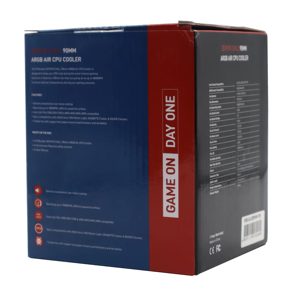 The PCBuilder ZEPHYR CHILL 90mm ARGB Air Cooler is designed to keep your PC cool during the most intense gaming sessions. It features a 90mm fan that can pump air at up to 1800RPM allowing your PC to maintain optimal temperatures during extended sessions.