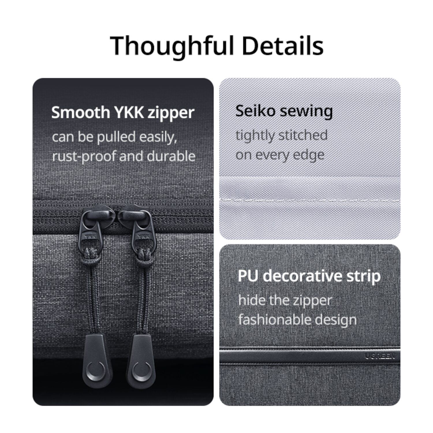 • Zippers: YKK (High Durability, Smooth Closure)